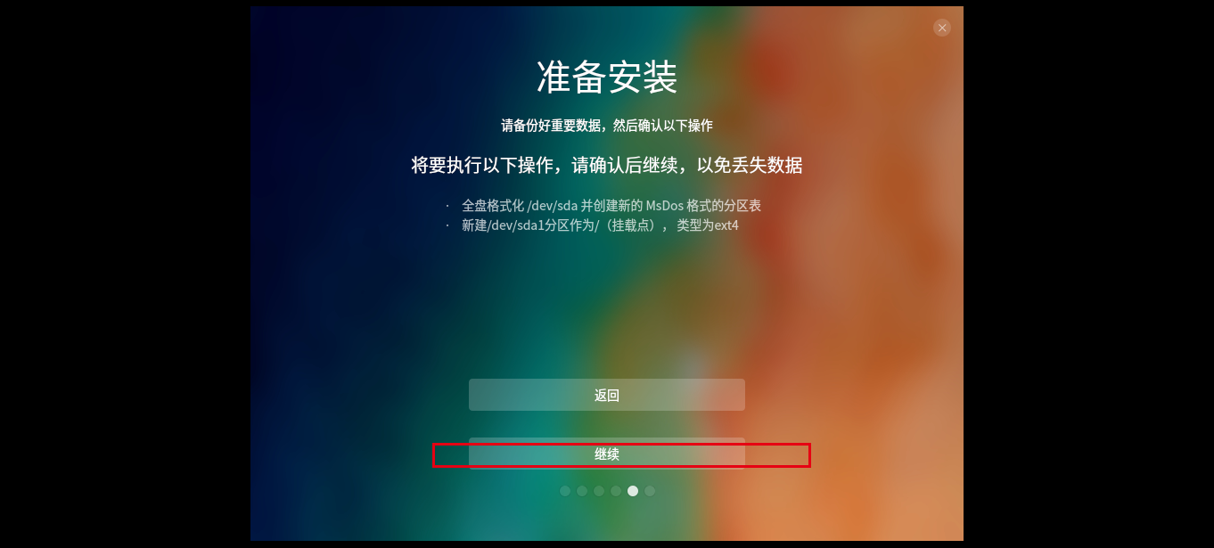 19. 然后点击之前给分配的磁盘,点击开始安装: