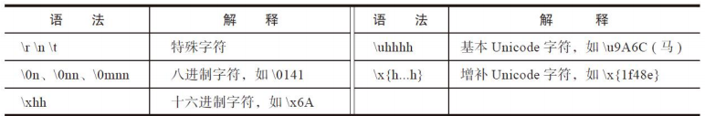 大部门的单个字符就是用字符的本身进行表示,但是有些字符使用多个字符表示,这些字符都以