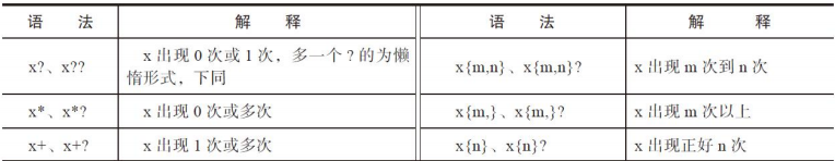 +:表示前面字符一次或多次出现。(如ab+c能匹配abc,abbc,abbbc)*:表示前面的字符零次或者多次出现(如ab*c能匹配ac,abbc)?:表示前面的字符可能出现也可能不出现(如ab?c可以匹配ac,abc但是不能匹配abbc)量词的匹配默认是贪婪的,即尽量会匹配到最后一个,如果只想匹配到第一个则在后面加